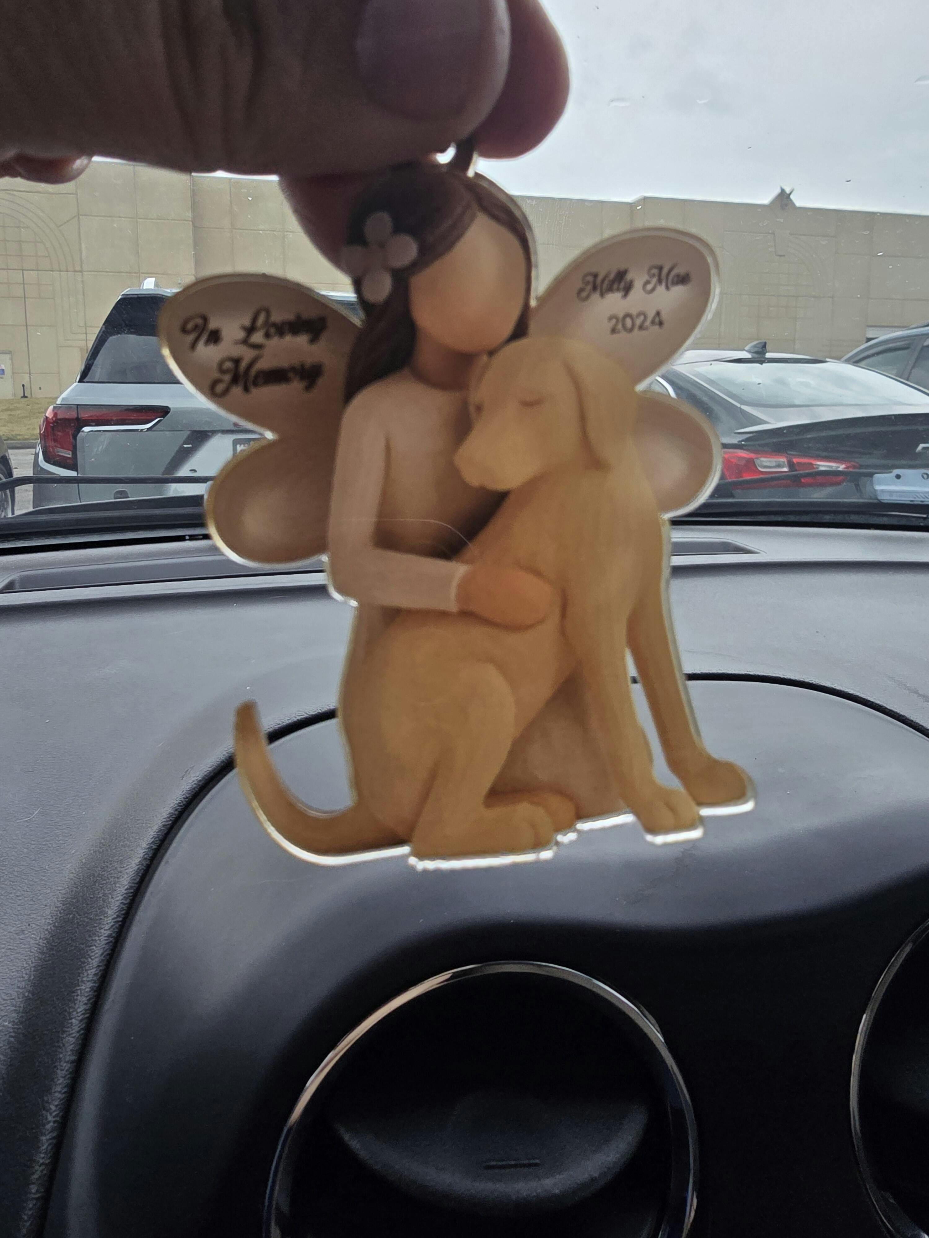 Angel Hugging Dog Memorial - Personalized Acrylic Car Hanger, Dog Remembrance Gift